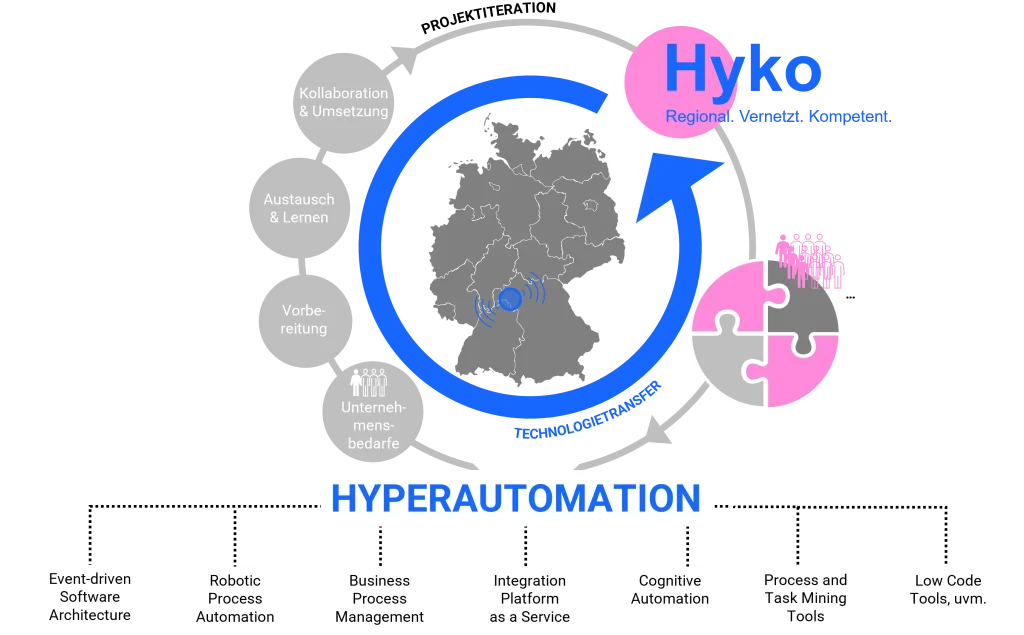 Projekt-Hyko hilft kleinen und mittleren Unternehmen, durch clevere Technik und digitale Lösungen besser und sicherer zu arbeiten. So werden Abläufe einfacher, Zeit und Kosten gespart – und die Firmen bleiben auch in Zukunft erfolgreich.
